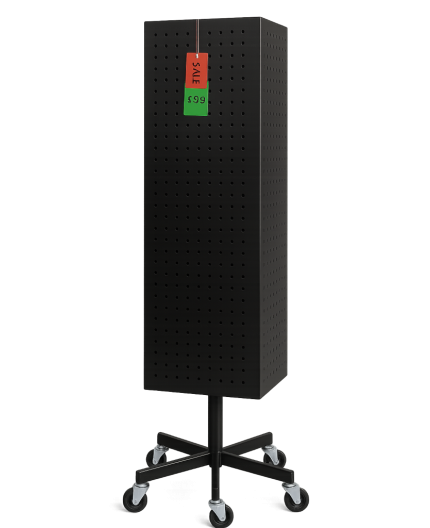 Dzięki perforowanej powierzchni z możliwością montażu haczyków, stojak ten sprawdzi się doskonale w ekspozycji biżuterii, zawieszek, breloków, akcesoriów modowych i innych ozdób. W podstawowej wersji świetnie nadaje się także do prezentacji kolorowych magnesów, dzięki swojej metalowej konstrukcji.