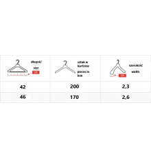 Kolor: czarny. Wymiary: długość: 42 cm, wysokość: 20 cm, grubość: 2 cm. Zastosowanie: Garsonki, marynarki, bluzy, kurtki, płaszcze, T-shirty. Cena brutto za1 sztukę. |